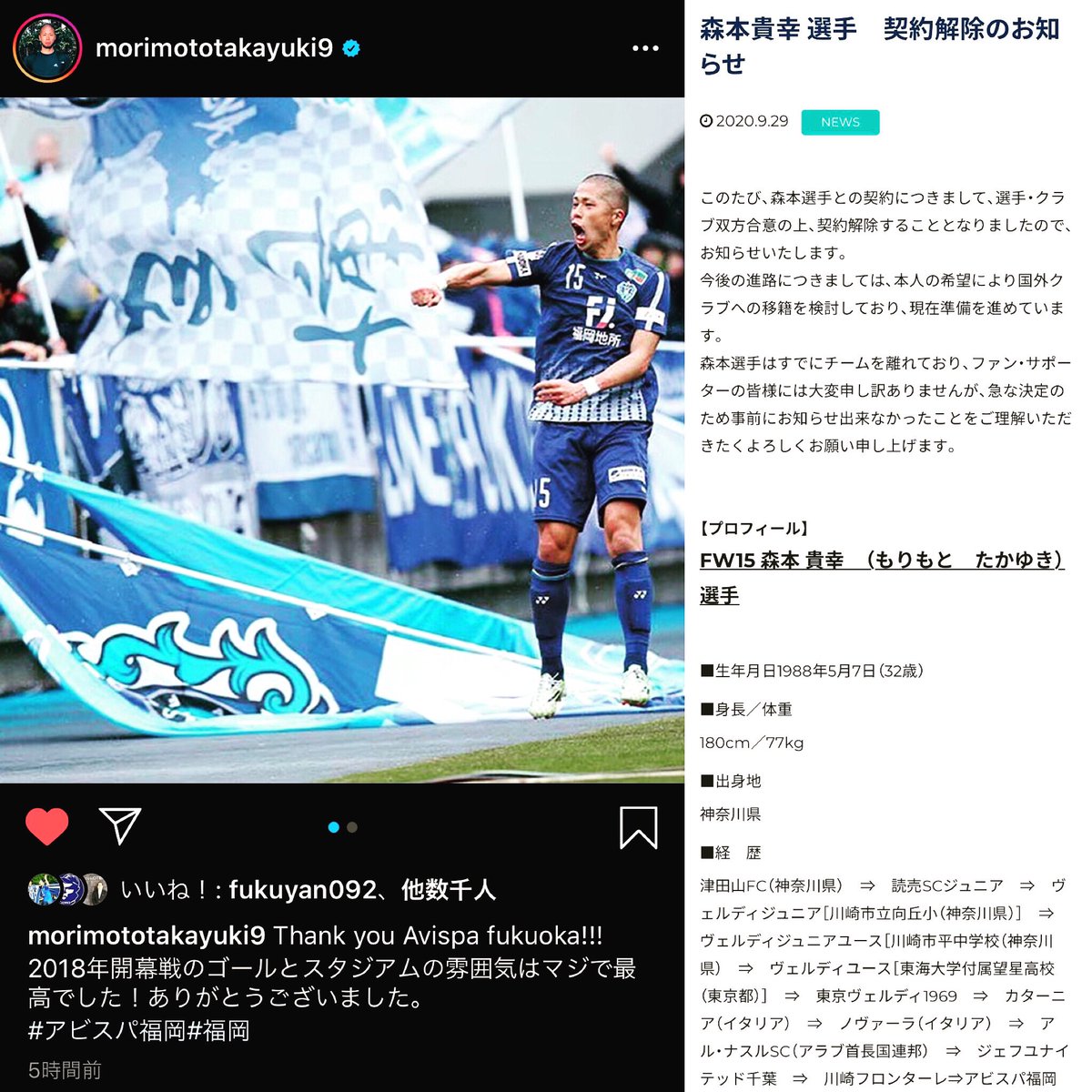 こうけん 森本貴幸選手退団 アビスパでのプレーが観られないのは残念だけど 次のステージの国外クラブでも活躍して欲しい 2年半共に闘ってくれてありがとう 森本貴幸 選手 アビスパ福岡 フットボール サッカー Avispa Fukuoka Football